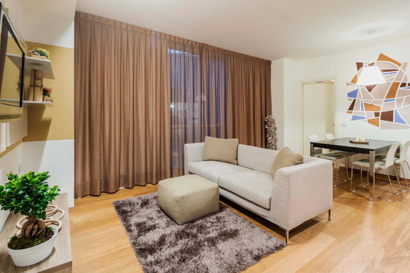 Deluxe Apartment. This apartment features 1 living room, 1 separate bedroom and 1 bathroom with a shower and free toiletries. In the kitchenette, guests will find a stovetop, a refrigerator, a dishwasher and kitchenware. This apartment is air-conditioned and has a seating area with a flat-screen TV, a washing machine, soundproof walls, a tea and coffee maker, as well as a wardrobe. The unit has 2 beds.